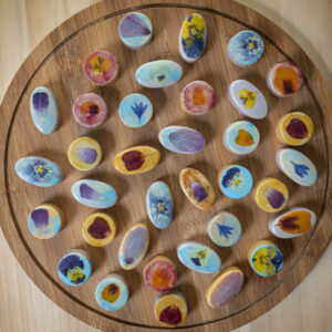 We serveren een verrassende mix van zoete en hartige lekkernijen waarin bloemen telkens terugkomen, subtiel, kleurrijk en vol smaak. Denk aan verfijnde hapjes, kleine sandwiches en huisgemaakte zoetigheden met een botanische twist. Wat je precies krijgt, houden we nog even geheim. Op de dag zelf ontvang je een menukaart die je meeneemt langs de ingrediënten en hun plek op het land. We starten met een korte rondleiding en schuiven daarna aan voor twee gangen, met bij elke gang een toelichting op wat je proeft.
