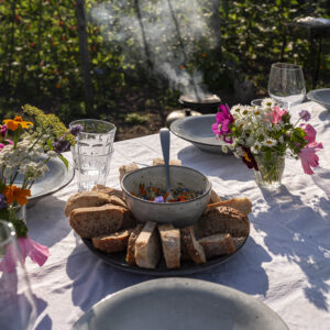 We zitten buiten, omringd door groen. Bij slecht weer kan de flower tea helaas niet doorgaan; je ontvangt dan je geld terug en krijgt voorrang op een nieuwe datum. Vanwege de kleinschaligheid kunnen we beperkt rekening houden met allergieën of diëten. Een vegetarische optie is wel mogelijk (graag vooraf even laten weten). Voor groepen zijn er in overleg aanvullende mogelijkheden.