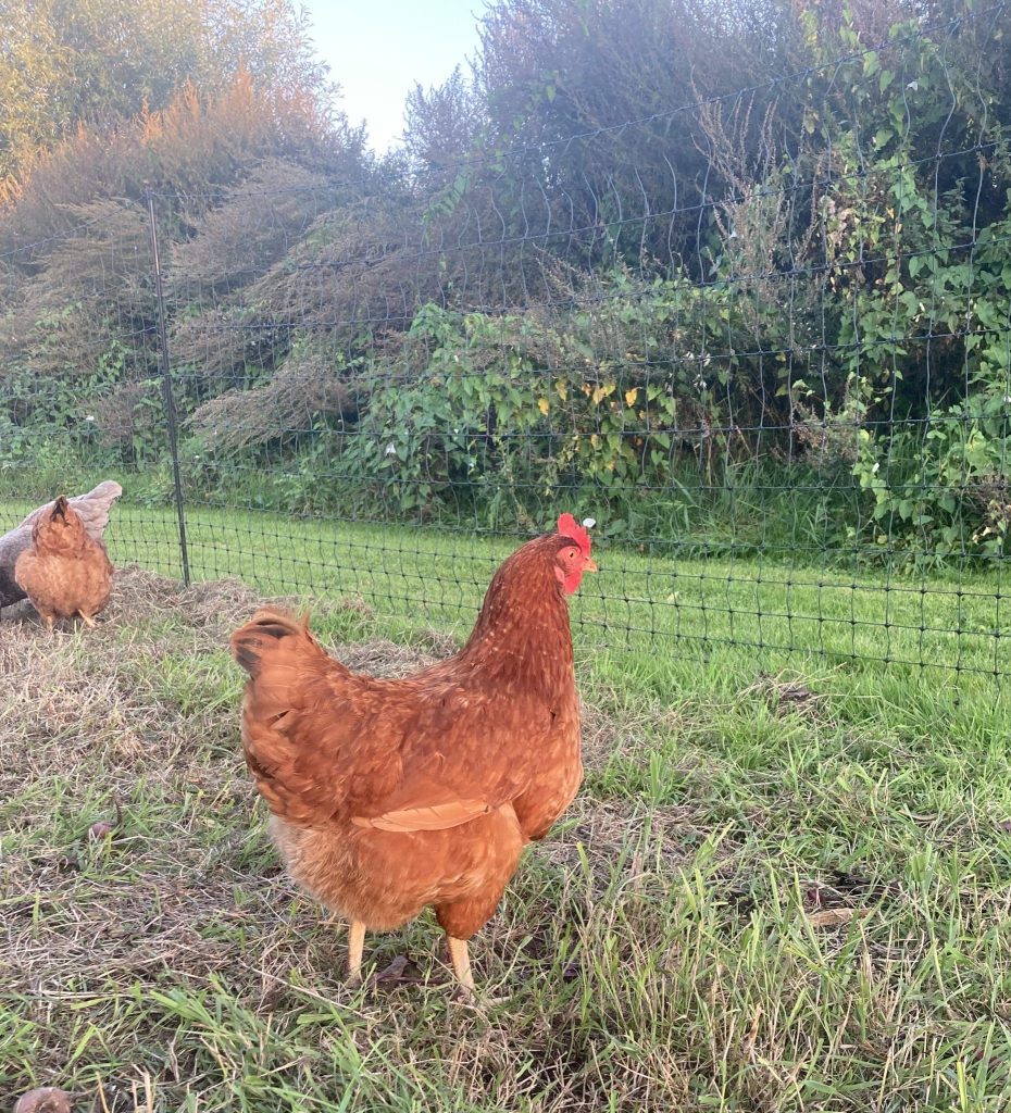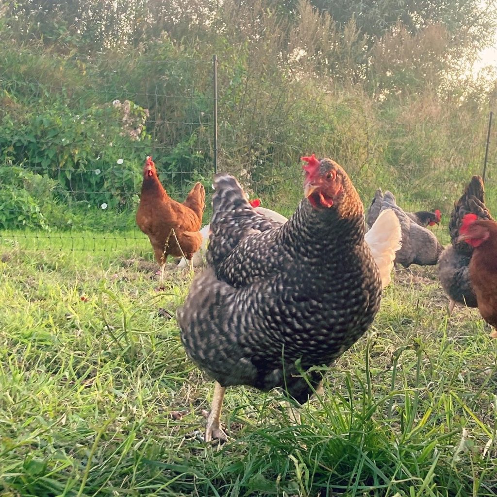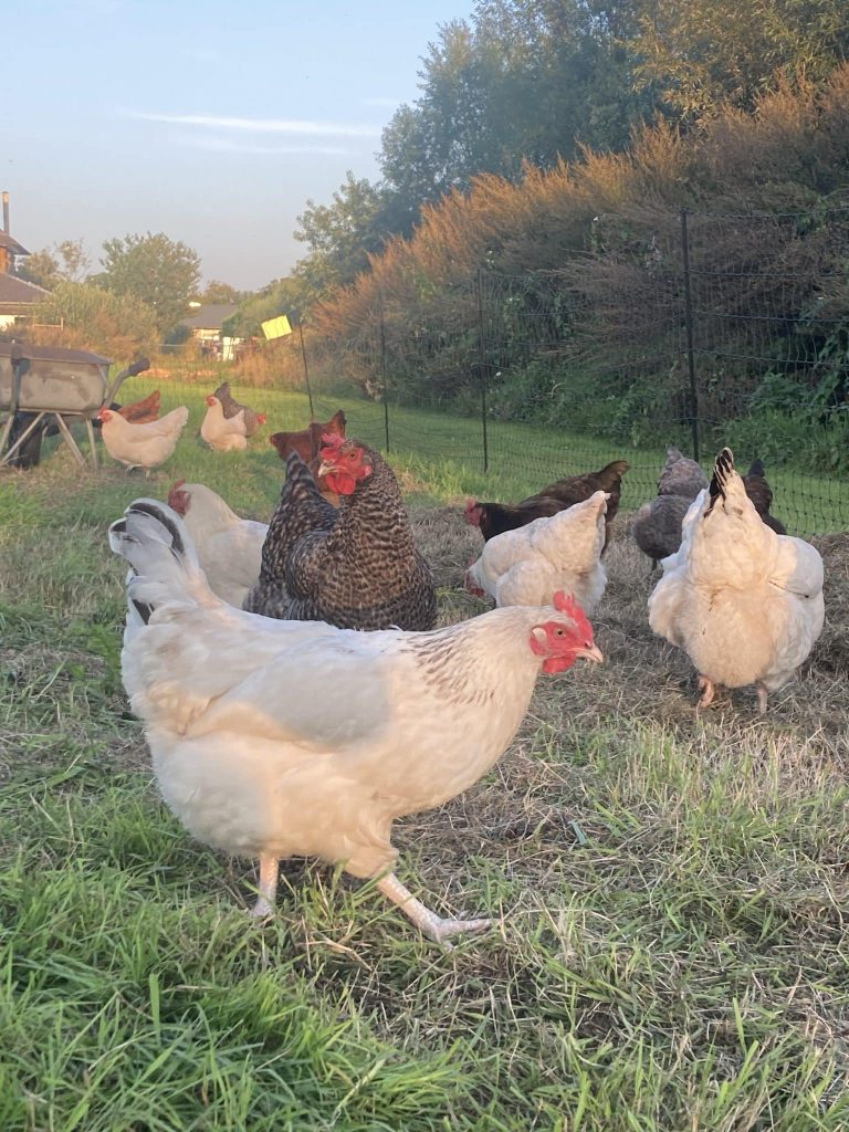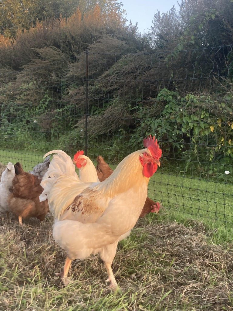 Omdat kippen van oorsprong bosdieren zijn, slapen ze graag ‘op stok’, een stuk boven de grond. Zo voelen ze zich veiliger voor roofdieren. Wanneer het begint te schemeren gaan de kippen bij KipEigen hun kipmobiel in om op stok te gaan. ’s Nachts zit het hok goed dicht, zodat er geen vos of marter bij kan. Wanneer het licht wordt kunnen de kippen weer naar buiten om te scharrelen en in de loop van de dag kunnen ze hun ei kwijt in het legnest van de kipmobiel. Overdag hebben we minder te vrezen voor vos of marter, maar de roofvogels -die overdag actief zijn- lusten ook wel een kippetje. Daarom is het belangrijk dat de kippen de mogelijkheid hebben om te schuilen bij gevaar. De hanen spelen hierin een belangrijke rol. Zij staan op de uitkijk en slaan alarm wanneer ze gevaar zien. Ze willen de hennen waar nodig verdedigen. Daarnaast zijn hanen ook waardevol in de groepsdynamiek. Ze komen tussenbeide wanneer hennen aan het ruziën zijn en helpen de hennen met het zoeken naar voedsel. De mogelijkheid om natuurlijk gedrag te uiten, wordt geassocieerd met een verhoogd dierenwelzijn. Iets dat we bij Natuurboerderij KipEigen hoog in het vaandel hebben staan!