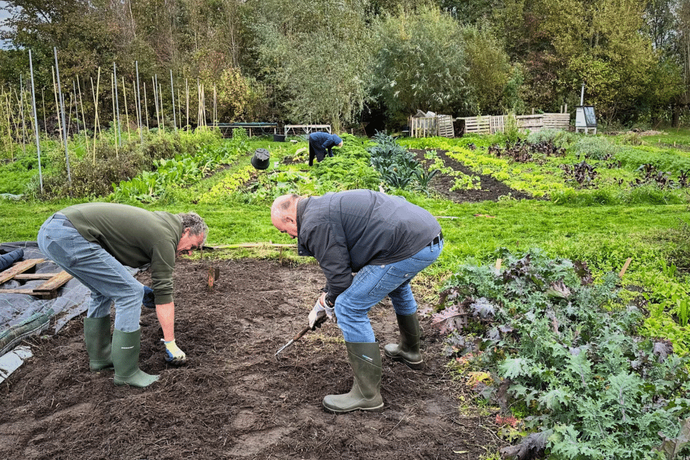 Naast onze eigen meehelpmomenten krijgen we ook steun van andere initiatieven. Denk aan NLdoet, vrijwilligersgroepen of bedrijven die via MVO of ESG een dag hun hoofd uitzetten en hun handen in de aarde steken.